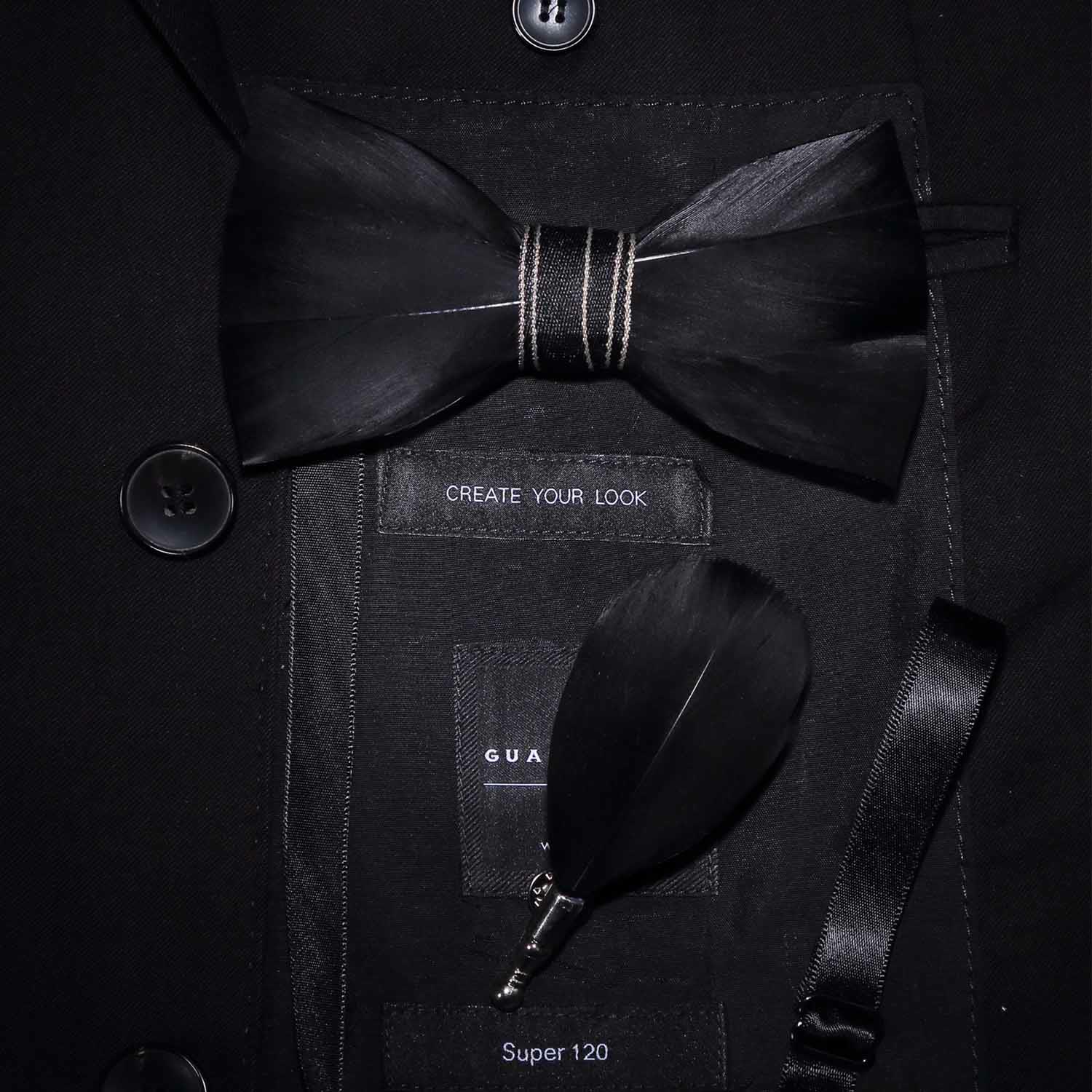 Black Noble Feather Bow Tie with Lapel Pin